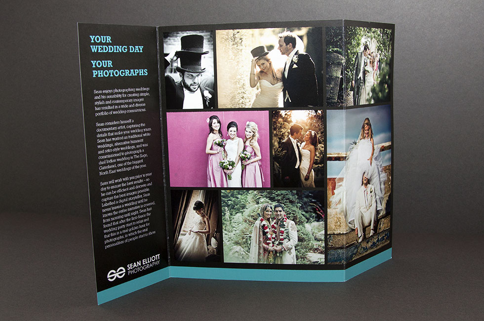 Sean Elliott Photography asked studio neighbour Velcrobelly to design promotional literature for use at wedding fairs and exhibition events.