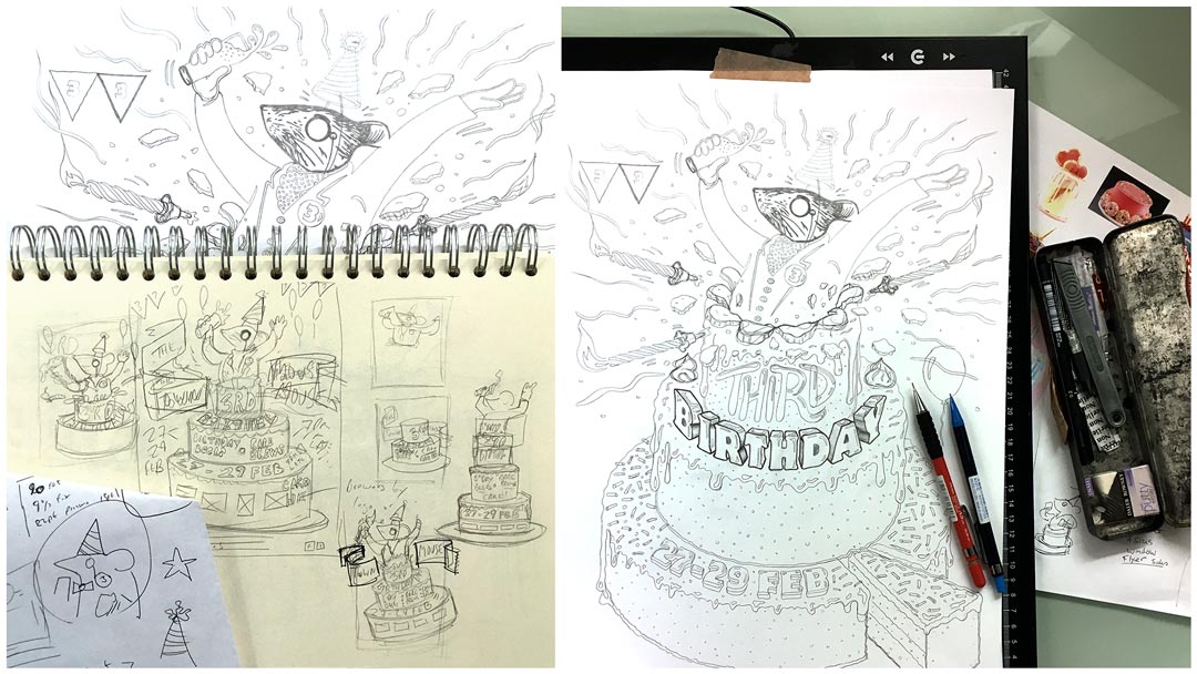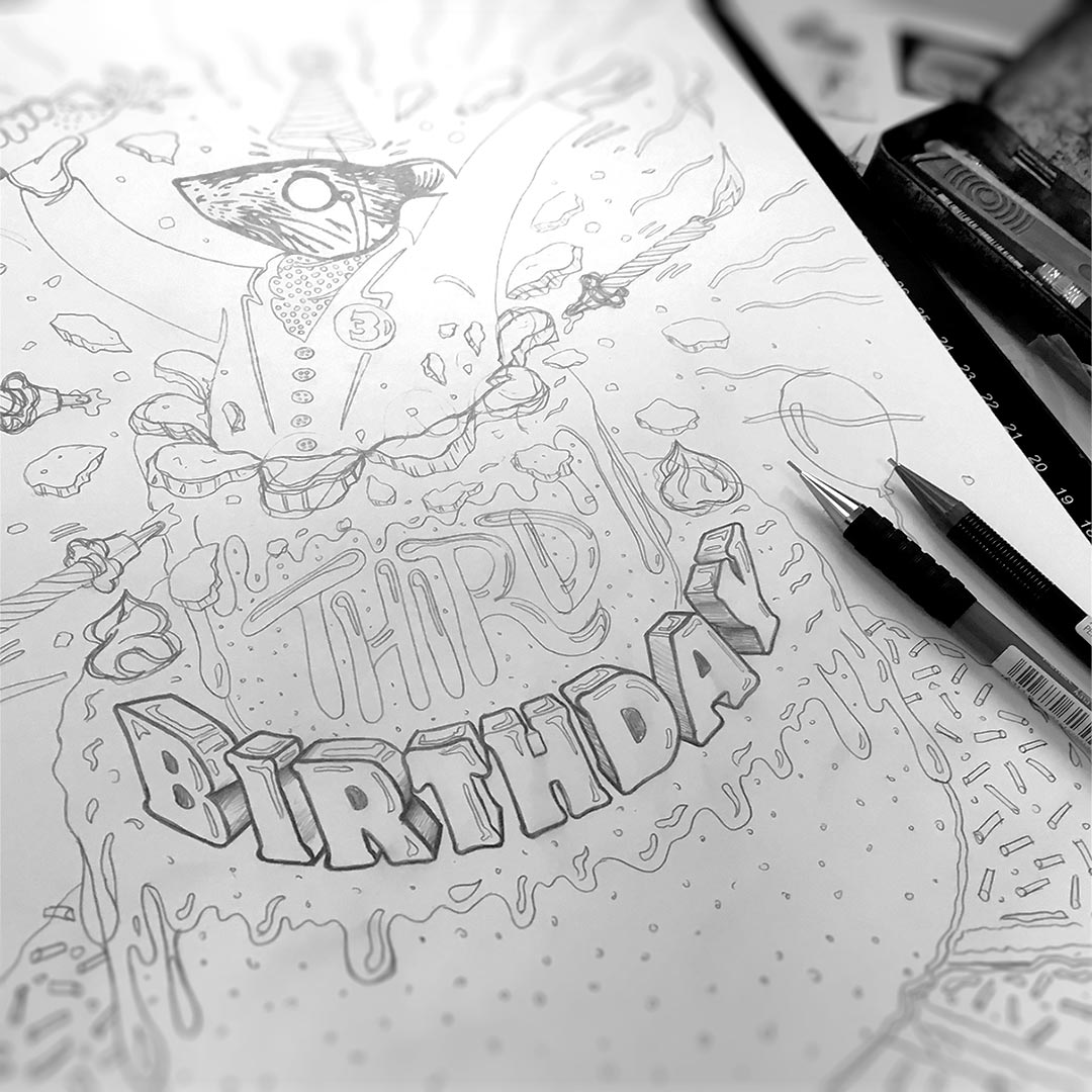 In the image above, there’s a little doodle of the birthday logo concept in the bottom left corner.
